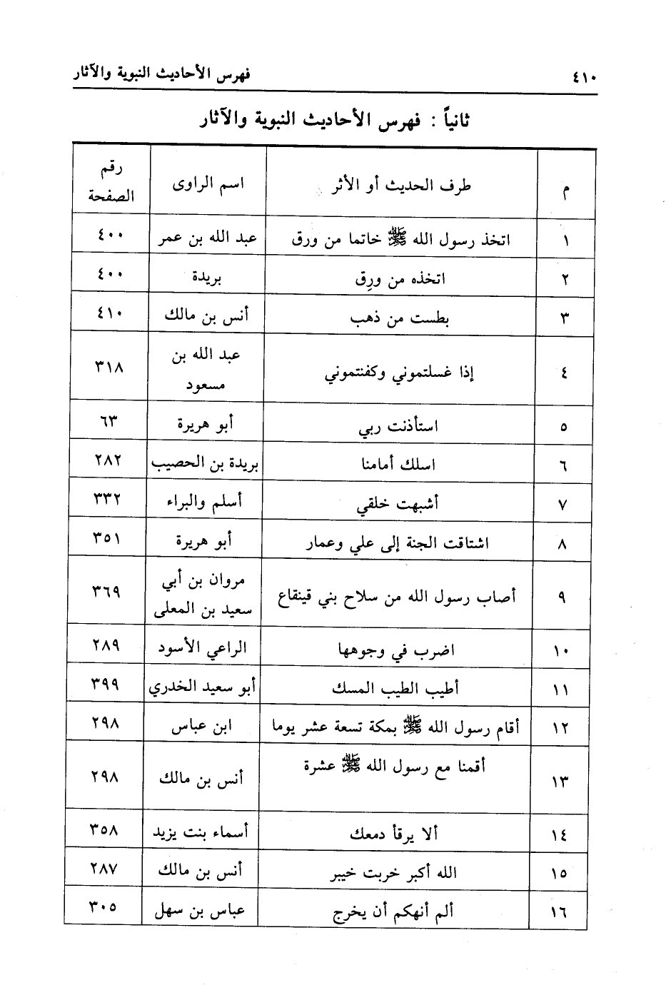 ثانيا: فهرس الأحاديث النبوية والاثار