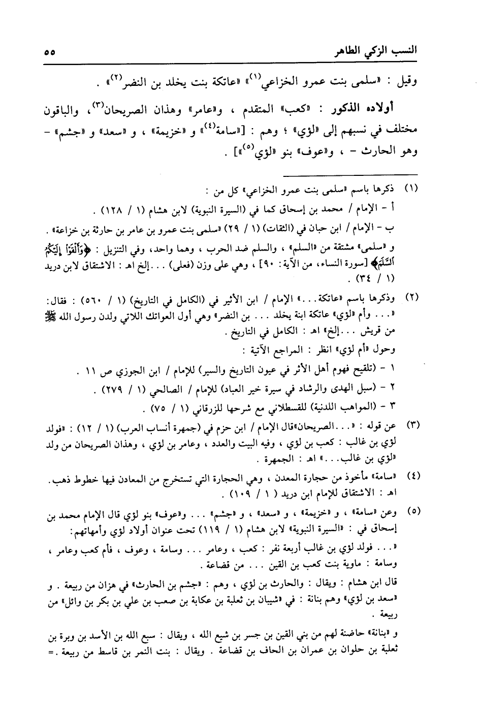 (5) وعن «سامة» ، و «خزيمة» ، و «سعد» ، و «جشم» ... و «عوف» بنو لؤي قال الإمام محمد بن إسحاق في: «السيرة النبوية» لابن هشام (1/ 119) تحت عنوان أولاد لؤي وأمهاتهم: « ... فولد لؤي بن غالب أربعة نفر: كعب، وعامر ... وسامة، وعوف، فأم كعب وعامر، وسامة: ماوية بنت كعب بن القين ... من قضاعة. قال ابن هشام: ويقال: والحارث بن لؤي، وهم: «جشم بن الحارث» في هزان من ربيعة. و «سعد بن لؤي» وهم بنانة: في «شيبان بن ثعلبة بن عكابة بن صعب بن علي بن بكر بن وائل» من ربيعة. و «بنانة» حاضنة لهم من بني القين بن جسر بن شيع الله، ويقال: سبع الله بن الأسد بن وبرة بن ثعلبة بن حلوان بن عمران بن الحاف بن قضاعة. ويقال: بنت النمر بن قاسط من ربيعة. -