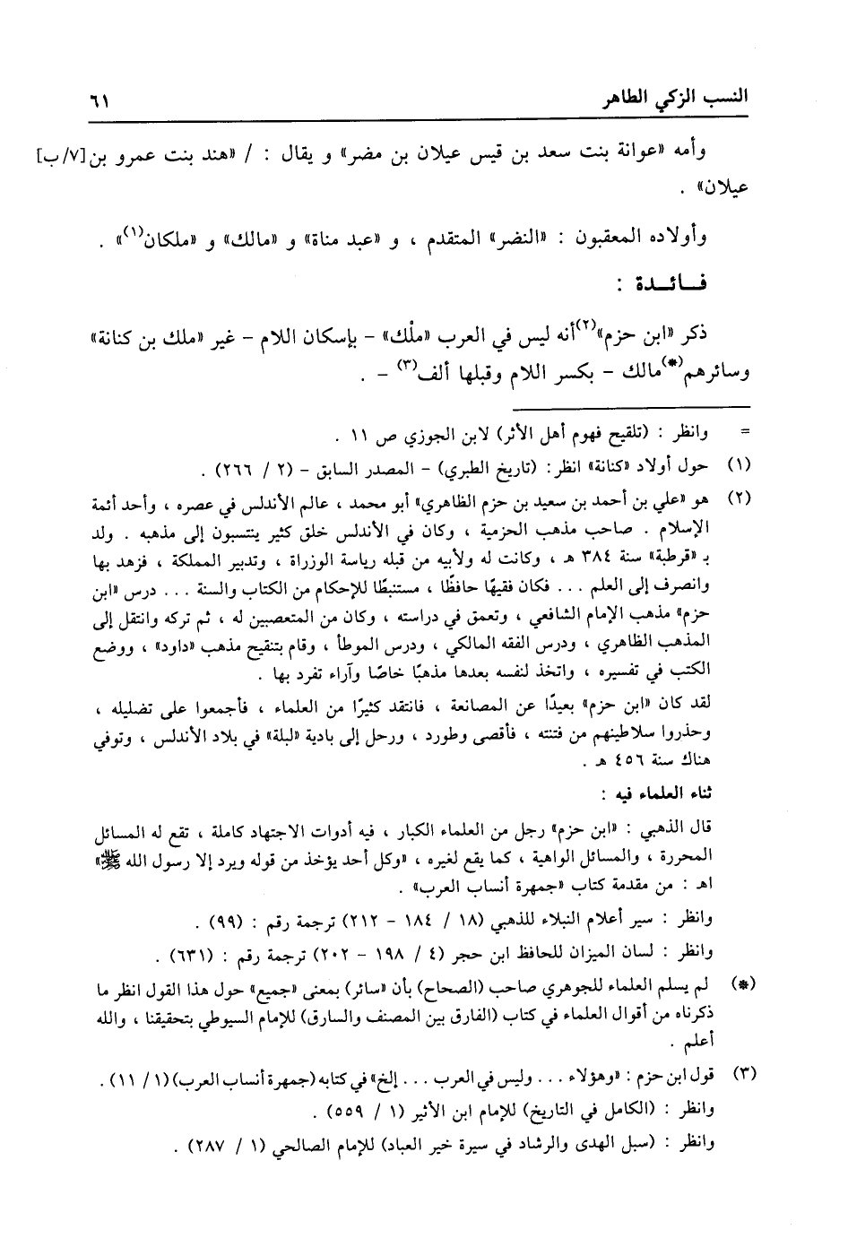 (3) قول ابن حزم: «وهؤلاء ... وليس في العرب ... إلخ» في كتابه (جمهرة أنساب العرب) (1/ 11) . وانظر: (الكامل في التاريخ) للإمام ابن الأثير (1/ 559) . وانظر: (سبل الهدى والرشاد في سيرة خير العباد) للإمام الصالحي (1/ 287) .