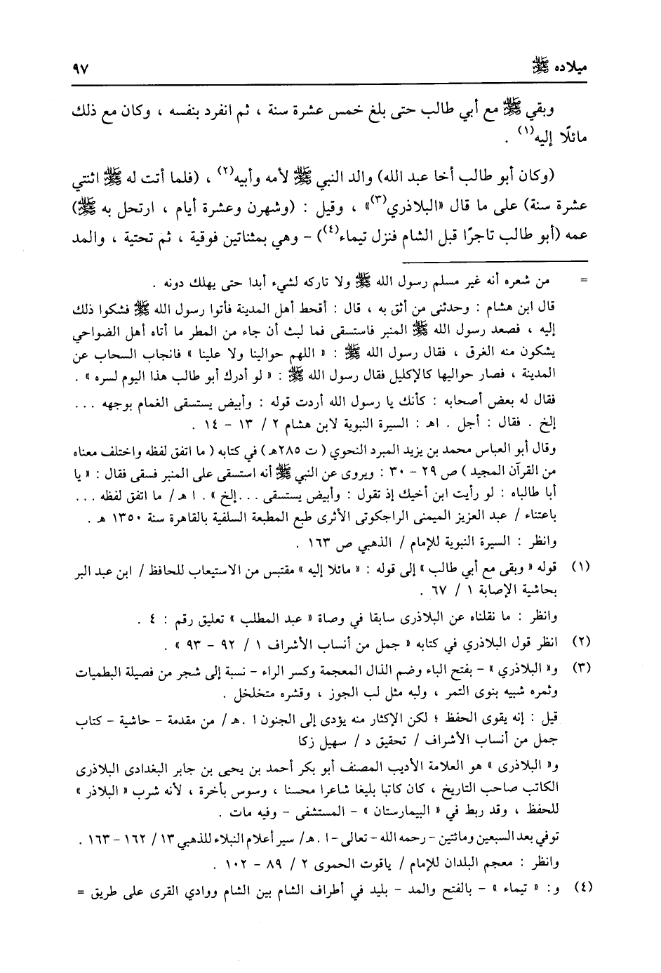 (1) قوله «وبقى مع أبي طالب» إلى قوله: «مائلا إليه» مقتبس من الاستيعاب للحافظ/ ابن عبد البر بحاشية الإصابة 1/ 67. وانظر: ما نقلناه عن البلاذرى سابقا في وصاة «عبد المطلب» تعليق رقم: 4.