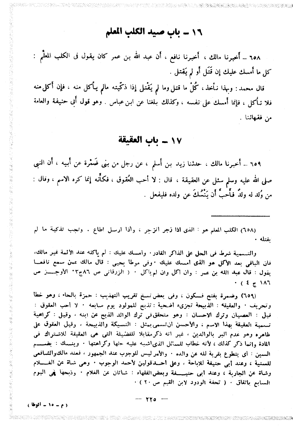 ٦٥٨ - أَخْبَرَنَا مَالِكٌ، أَخْبَرَنَا نَافِعٌ، أَنَّ عَبْدَ اللَّهِ بْنَ عُمَرَ، كَانَ يَقُولُ فِي الْكَلْبِ الْمُعَلَّمِ: كُلْ مَا أَمْسَكَ عَلَيْكَ، إِنْ قَتَلَ، أَوْ لَمْ يَقْتُلْ "، قَالَ مُحَمَّدٌ: وَبِهَذَا نَأْخُذُ، كُلُّ مَا قُتِلَ، وَمَا لَمْ يُقْتَلْ إِذَا ذَكَّيْتَهُ مَا لَمْ يَأْكُلْ مِنْهُ، فَإِنْ أَكَلَ، فَلا تَأْكُلْ فَإِنَّمَا أَمْسَكَهُ عَلَى نَفْسِهِ، وَكَذَلِكَ بَلَغَنَا عَنِ ابْنِ عَبَّاسٍ رَضِيَ اللَّهُ تَعَالَى عَنْهُ، وَهُوَ قَوْلُ أَبِي حَنِيفَةَ، وَالْعَامَّةِ مِنْ فُقَهَائِنَا رَحِمَهُمُ اللَّهُ