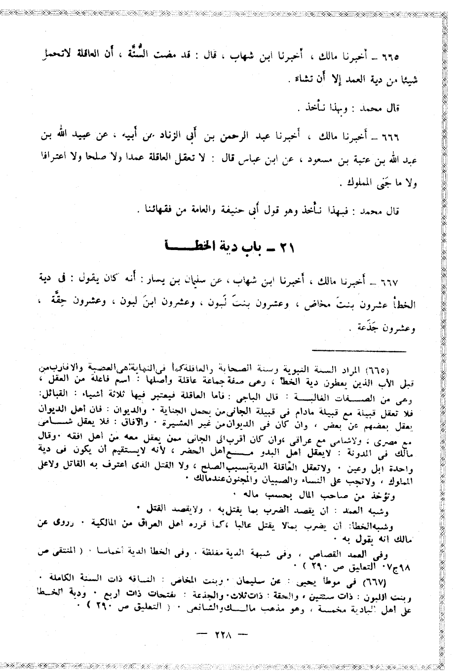 ٦٦٦ - أَخْبَرَنَا عَبْدُ الرَّحْمَنِ بْنُ أَبِي الزِّنَادِ، عَنْ أَبِيهِ، عَنْ عُبَيْدِ اللَّهِ بْنِ عَبْدِ اللَّهِ بْنِ عُتْبَةَ بْنِ مَسْعُودٍ، عَنِ ابْنِ عَبَّاسٍ، قَالَ: «لا تَعْقِلُ الْعَاقِلَةُ عَمْدًا، وَلا صُلْحًا، وَلا اعْتِرَافًا، وَلا مَا جَنَى الْمَمْلُوكُ» قَالَ مُحَمَّدٌ: وَبِهَذَا نَأْخُذُ، وَهُوَ قَوْلُ أَبِي حَنِيفَةَ، وَالْعَامَّةِ مِنْ فُقَهَائِنَا