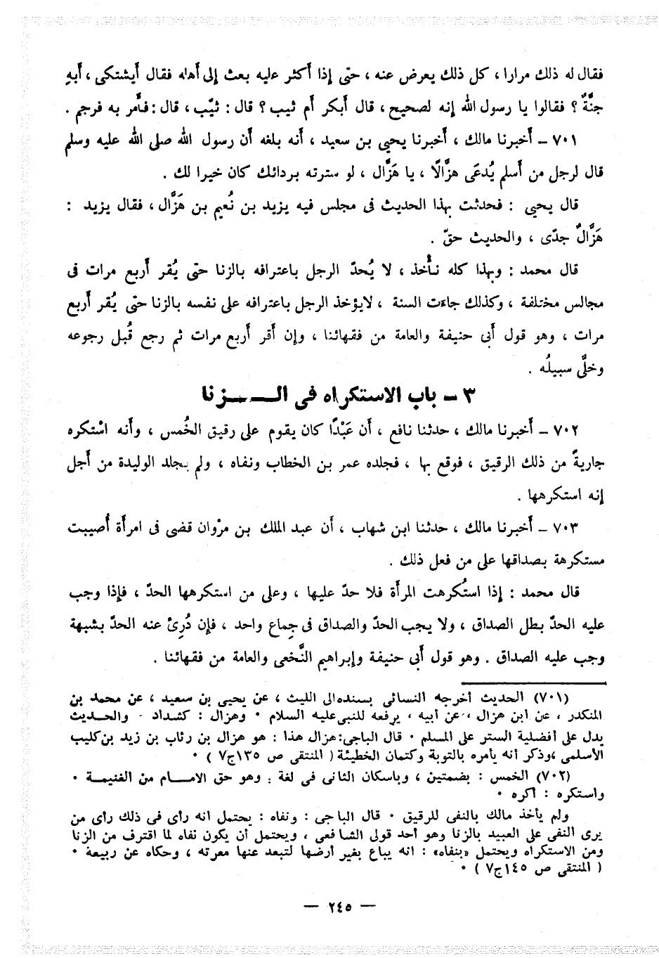 ٧٠٢ - أَخْبَرَنَا مَالِكٌ، حَدَّثَنَا نَافِعٌ، أَنَّ عَبْدًا كَانَ يَقُومُ عَلَى رَقِيقِ الْخُمْسِ، وَأَنَّهُ اسْتَكْرَهَ جَارِيةً مِنْ ذَلِكَ الرَّقِيقِ، فَوَقَعَ بِهَا، فَجَلَدَهُ عُمَرُ بْنُ الْخَطَّابِ، وَنَفَاهُ، وَلَمْ يَجْلِدِ الْوَلِيدَةَ مِنْ أَجْلِ أَنَّهُ اسْتَكْرَهَهَا