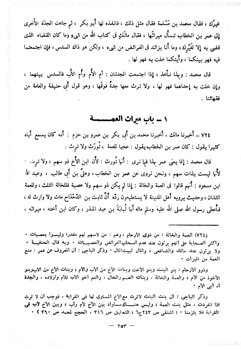 قَالَ مُحَمَّدٌ: إِنَّمَا يَعْنِي عُمَرُ هَذَا فِيمَا نَرَى أَنَّهَا تُورَثُ، لأَنَّ ابْنَ الأَخِ ذُو سَهْمٍ، وَلا تَرِثُ لأَنَّهَا لَيْسَتْ بِذَاتِ سَهْمٍ، وَنَحْنُ نَرْوِي عَنْ عُمَرَ بْنِ الْخَطَّابِ، وَعَلِيِّ بْنِ أَبِي طَالِبٍ، وَعَبْدِ اللَّهِ بْنِ مَسْعُودٍ، أَنَّهُمْ قَالُوا فِي الْعَمَّةِ وَالْخَالَةِ إِذَا لَمْ يَكُنْ ذُو سَهْمٍ، وَلا عَصَبَةٍ: فَلِلْخَالَةِ الثُّلُثُ، وَلِلْعَمَّةِ الثُّلُثَانِ.