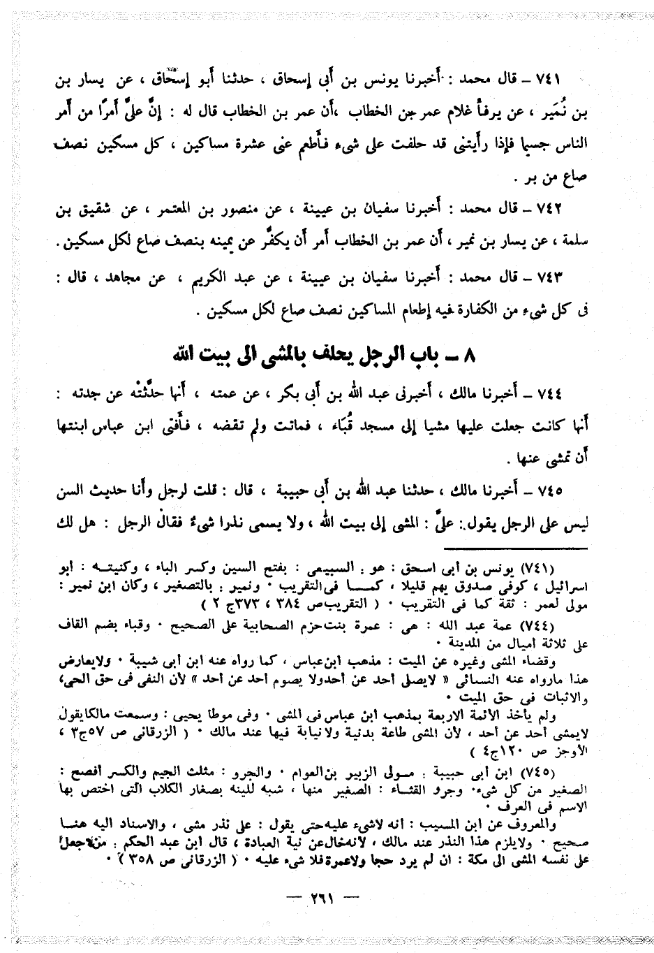 ٧٤٥ - أَخْبَرَنَا مَالِكٌ، حَدَّثَنَا عَبْدُ اللَّهِ بْنُ أَبِي حَبِيبَةَ، قَالَ: قُلْتُ لِرَجُلٍ، وَأَنَا حَدِيثُ السِّنِّ، لَيْسَ عَلَى الرَّجُلِ يَقُولُ: عَلَيَّ الْمَشْيُ إِلَى بَيْتِ اللَّهِ وَلا يُسَمِّي نَذْرًا شَيْءٌ؟ فَقَالَ الرَّجُلُ: هَلْ لَكَ ⦗٢٦٢⦘ إِلَى أَنْ أُعْطِيَكَ هَذَا الْجَرْوَ، لِجَرْوِ قِثَّاءٍ فِي يَدِهِ، وَتَقُولُ: عَلَيَّ مَشْيٌ إِلَى بَيْتِ اللَّهِ تَعَالَى؟ فَقُلْتُ: نَعَمْ، فَقُلْتُهُ، فَمَكَثْتُ حِينًا حَتَّى عَقَلْتُ، فَقِيلَ لِي: إِنَّ عَلَيْكَ مَشْيًا، فَجِئْتُ سَعِيدَ بْنَ الْمُسَيِّبِ، فَسَأَلْتُهُ عَنْ ذَلِكَ، فَقَالَ: عَلَيْكَ مَشْيٌ، فَمَشَيْتُ.