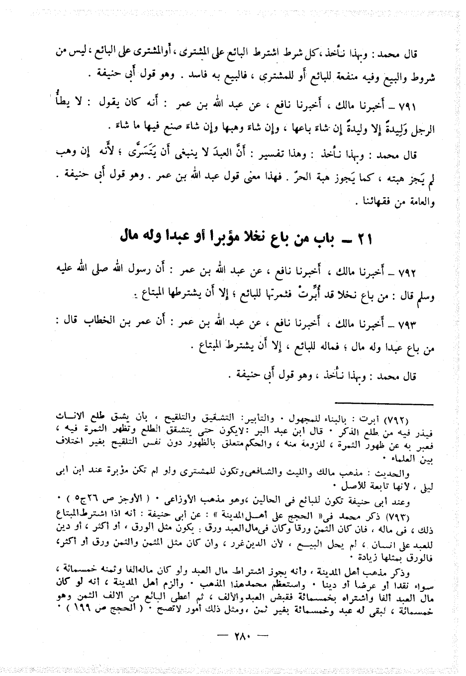 ٧٩٣ - أَخْبَرَنَا مَالِكٌ، أَخْبَرَنَا نَافِعٌ، عَنْ عَبْدِ اللَّهِ بْنِ عُمَرَ، أَنَّ عُمَرَ بْنَ الْخَطَّابِ، قَالَ: «مَنْ بَاعَ عَبْدًا وَلَهُ مَالٌ، فَمَالُهُ لِلْبَائِعِ إِلا أَنْ يَشْتَرِطَهُ الْمُبْتَاعُ» .