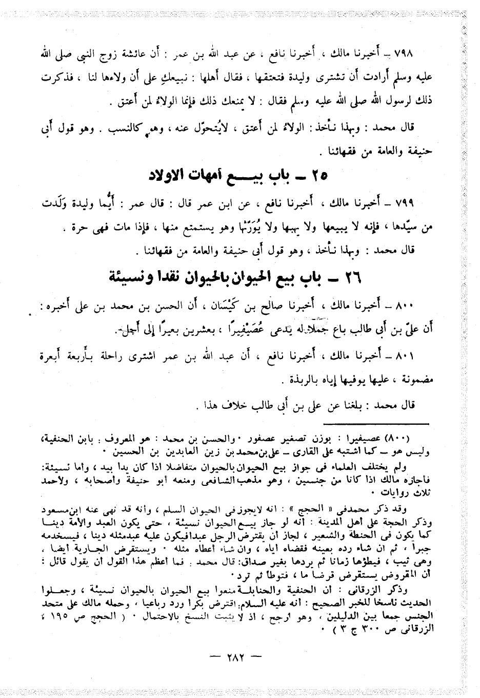 ٨٠٠ - أَخْبَرَنَا مَالِكٌ، أَخْبَرَنَا صَالِحُ بْنُ كَيْسَانَ، أَنَّ الْحَسَنَ بْنَ مُحَمَّدِ بْنِ عَلِيٍّ أَخْبَرَهُ، أَنَّ عَلِيَّ بْنَ أَبِي طَالِبٍ، بَاعَ جَمَلا لَهُ يُدْعَى عُصَيْفِيرًا بِعِشْرِينَ بَعِيرًا إِلَى أَجَلٍ