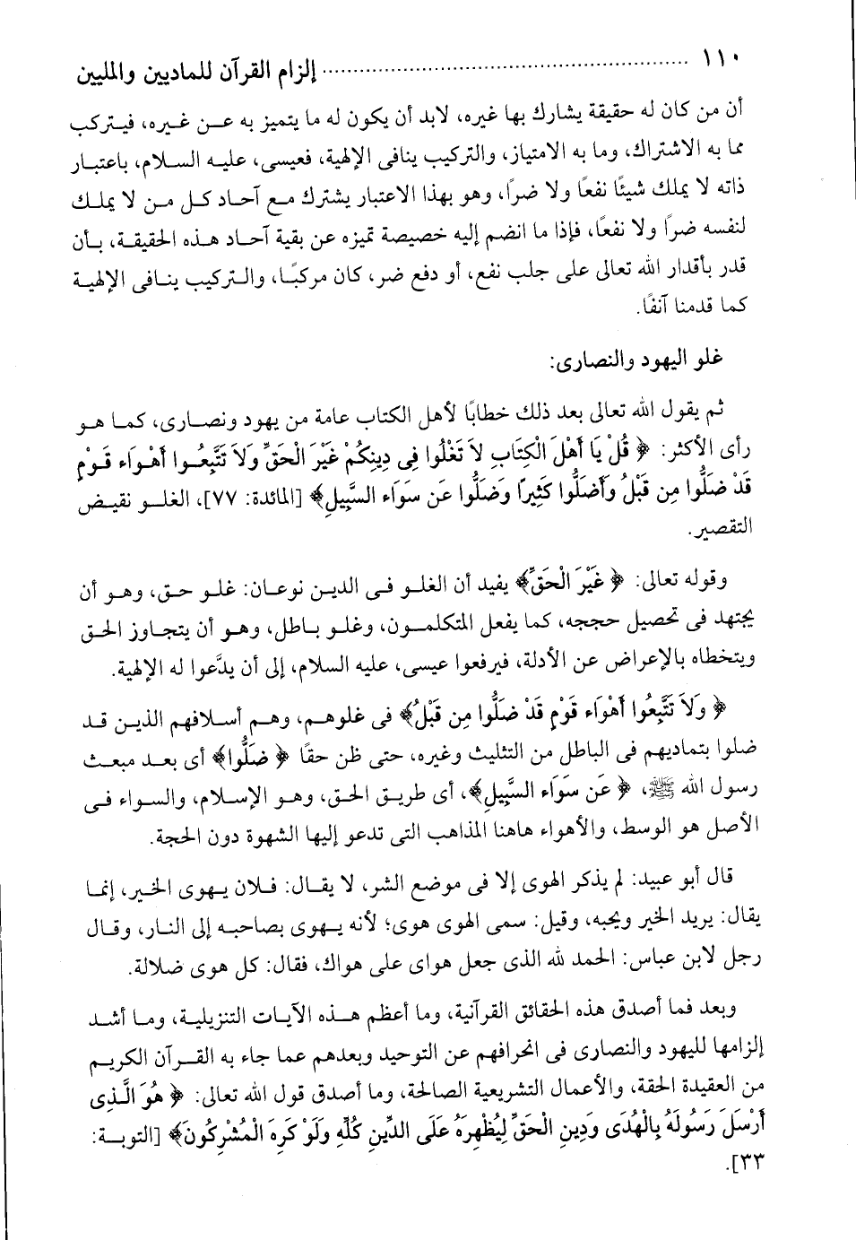 ثم يقول الله تعالى بعد ذلك خطابا لأهل الكتاب عامة من يهود ونصارى، كما هو رأى الأكثر: قُلْ يا أَهْلَ الْكِتابِ لا تَغْلُوا فِي دِينِكُمْ غَيْرَ الْحَقِّ وَلا تَتَّبِعُوا أَهْواءَ قَوْمٍ قَدْ ضَلُّوا مِنْ قَبْلُ وَأَضَلُّوا كَثِيراً وَضَلُّوا عَنْ سَواءِ السَّبِيلِ [المائدة: 77]، الغلو نقيض التقصير.