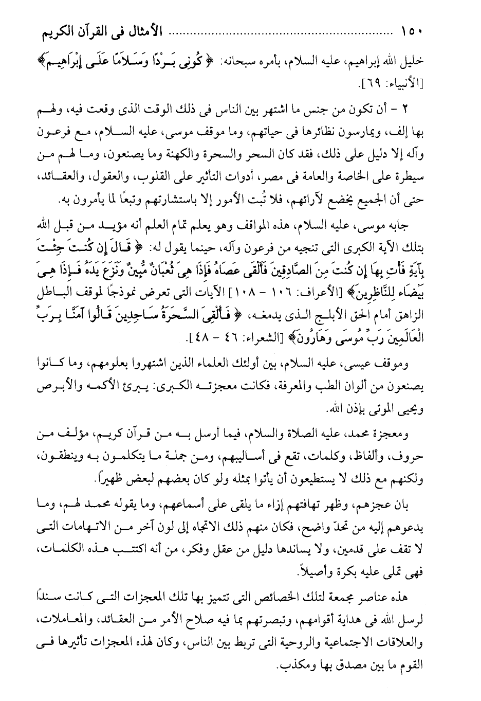 2 - أن تكون من جنس ما اشتهر بين الناس فى ذلك الوقت الذى وقعت فيه، ولهم بها إلف، ويمارسون نظائرها فى حياتهم، وما موقف موسى، عليه السلام، مع فرعون وآله إلا دليل على ذلك، فقد كان السحر والسحرة والكهنة وما يصنعون، وما لهم من سيطرة على الخاصة والعامة فى مصر، أدوات التأثير على القلوب، والعقول، والعقائد، حتى أن الجميع يخضع لآرائهم، فلا تبت الأمور إلا باستشارتهم وتبعا لما يأمرون به.