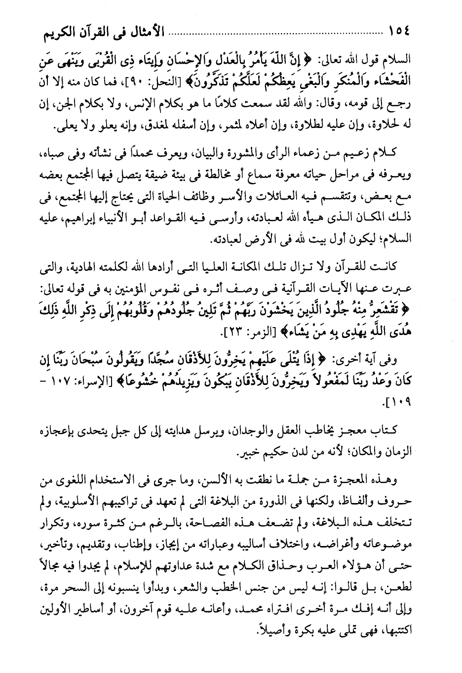 السلام قول الله تعالى: إِنَّ اللَّهَ يَأْمُرُ بِالْعَدْلِ وَالْإِحْسانِ وَإِيتاءِ ذِي الْقُرْبى وَيَنْهى عَنِ الْفَحْشاءِ وَالْمُنْكَرِ وَالْبَغْيِ يَعِظُكُمْ لَعَلَّكُمْ تَذَكَّرُونَ [النحل: 90]، فما كان منه إلا أن رجع إلى قومه، وقال: والله لقد سمعت كلاما ما هو بكلام الإنس، ولا بكلام الجن، إن له لحلاوة، وإن عليه لطلاوة، وإن أعلاه لمثمر، وإن أسلفه لمغدق، وإنه يعلو ولا يعلى.