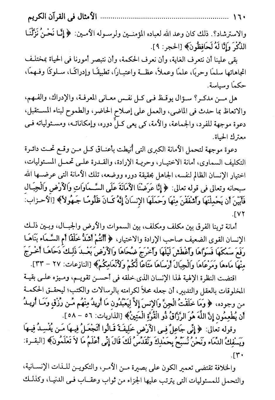 أمانة ترينا الفرق بين مكلف ومكلف، بين السموات والأرض والجبال، وبين ذلك الإنسان القوى الضعيف صاحب الإرادة والاختيار، أَأَنْتُمْ أَشَدُّ خَلْقاً أَمِ السَّماءُ بَناها رَفَعَ سَمْكَها فَسَوَّاها وَأَغْطَشَ لَيْلَها وَأَخْرَجَ ضُحاها وَالْأَرْضَ بَعْدَ ذلِكَ دَحاها أَخْرَجَ مِنْها ماءَها وَمَرْعاها وَالْجِبالَ أَرْساها مَتاعاً لَكُمْ وَلِأَنْعامِكُمْ [النازعات: 27 - 33].
