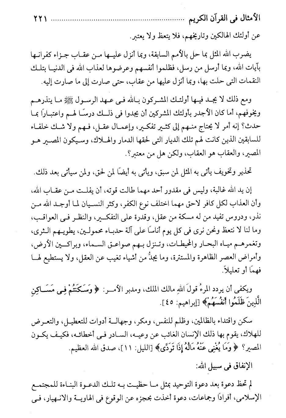 ويكفى أن يردد المرء قول الله مالك الملك، ومدبر الأمر: وَسَكَنْتُمْ فِي مَساكِنِ الَّذِينَ ظَلَمُوا أَنْفُسَهُمْ [إبراهيم: 45].