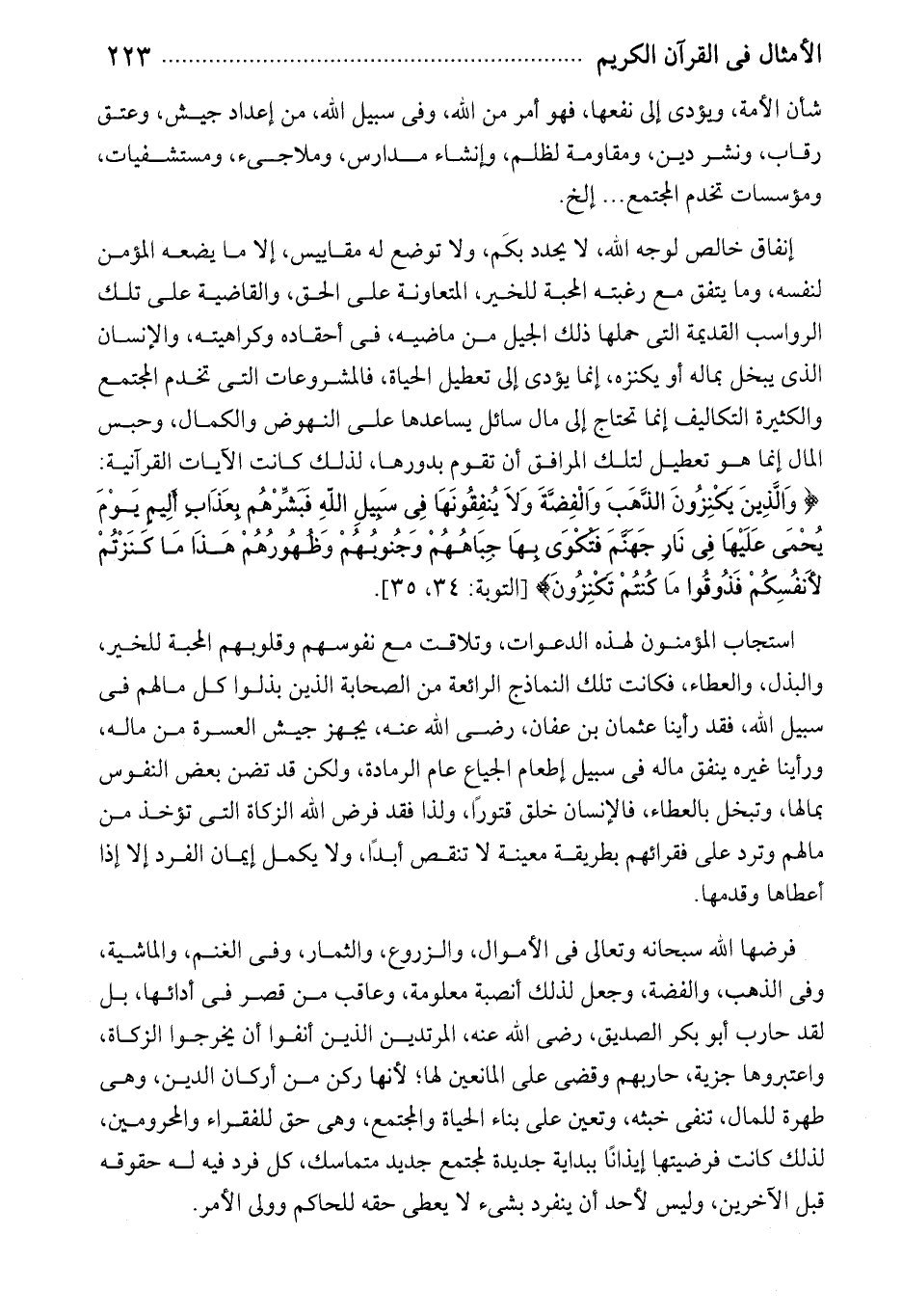 إنفاق خالص لوجه الله، لا يحدد بكم، ولا توضع له مقاييس، إلا ما يضعه المؤمن لنفسه، وما يتفق مع رغبته المحبة للخير، المتعاونة على الحق، والقاضية على تلك الرواسب القديمة التى حملها ذلك الجيل من ماضيه، فى أحقاده وكراهيته، والإنسان الذى يبخل بماله أو يكنزه، إنما يؤدى إلى تعطيل الحياة، فالمشروعات التى تخدم المجتمع والكثيرة التكاليف إنما تحتاج إلى مال سائل يساعدها على النهوض والكمال، وحبس المال إنما هو تعطيل لتلك المرافق أن تقوم بدورها، لذلك كانت الآيات القرآنية: