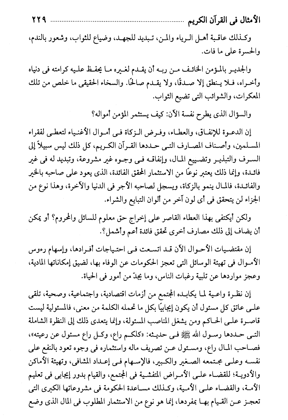 إن الدعوة للإنفاق، والعطاء، وفرض الزكاة فى أموال الأغنياء لتعطى لفقراء المسلمين، وأصناف المصارف التى حددها القرآن الكريم، كل ذلك ليس سبيلا إلى السرف والتبذير وتضييع المال، وإنفاقه فى وجوه غير مشروعة، وتبديد له فى غير فائدة، وإنما ذلك يعتبر نوعا من الاستثمار المحقق الفائدة، الذى يعود على صاحبه بالخير والفائدة، فالمال ينمو بالزكاة، ويسجل لصاحبه الأجر فى الدنيا والآخرة، وهذا نوع من الجزاء لن يتحقق فى أى لون آخر من ألوان التبايع والشراء.