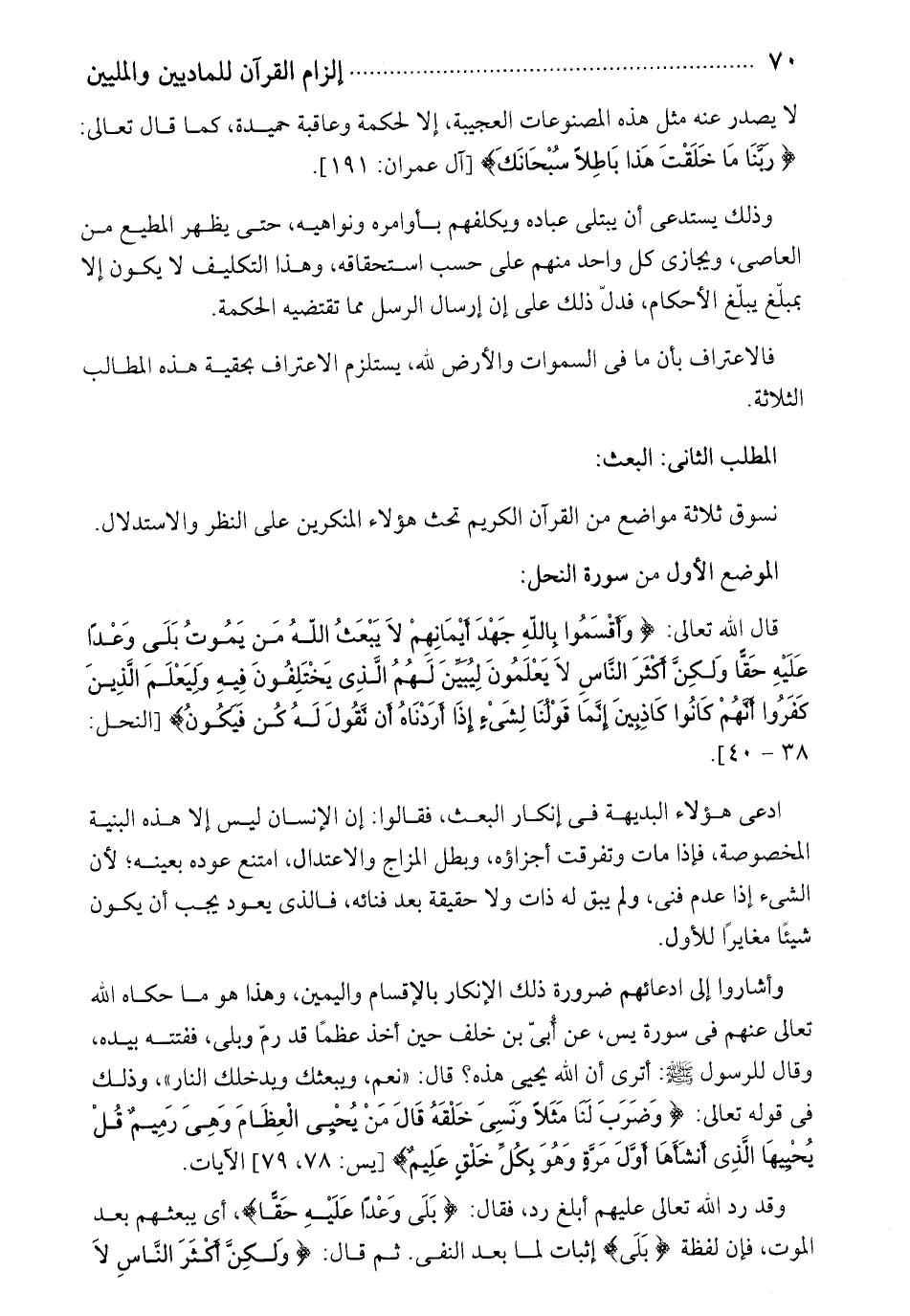 قال الله تعالى: وَأَقْسَمُوا بِاللَّهِ جَهْدَ أَيْمانِهِمْ لا يَبْعَثُ اللَّهُ مَنْ يَمُوتُ بَلى وَعْداً عَلَيْهِ حَقًّا وَلكِنَّ أَكْثَرَ النَّاسِ لا يَعْلَمُونَ لِيُبَيِّنَ لَهُمُ الَّذِي يَخْتَلِفُونَ فِيهِ وَلِيَعْلَمَ الَّذِينَ كَفَرُوا أَنَّهُمْ كانُوا كاذِبِينَ إِنَّما قَوْلُنا لِشَيْءٍ إِذا أَرَدْناهُ أَنْ نَقُولَ لَهُ كُنْ فَيَكُونُ [النحل: