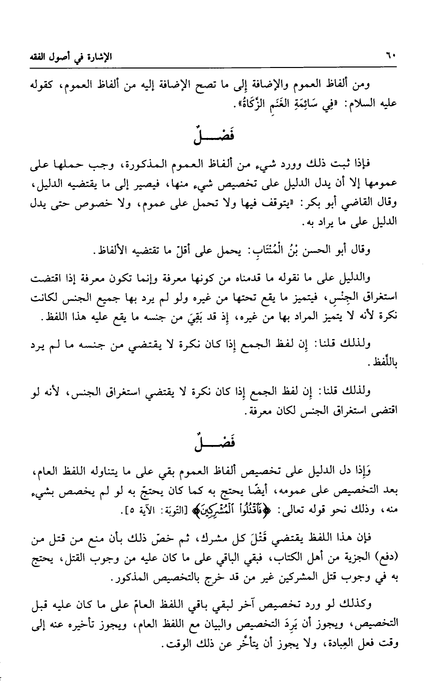 وكذلك لو ورد تخصيص آخر لبقي باقي اللفظ العامّ على ما كان عليه قبل التخصيص، ويجوز أن يَرِدَ التخصيص والبيان مع اللفظ العام، ويجوز تأخيره عنه إلى وقت فعل العِبادة، ولا يجوز أن يتأخَّر عن ذلك الوقت.