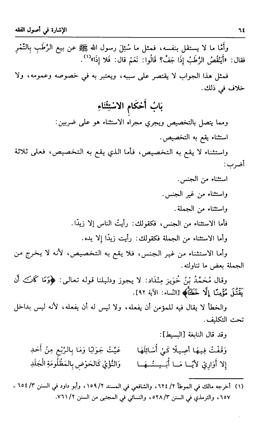 ومما يتصل بالتخصيص ويجري مجراه الاستثناء هو على ضربين: