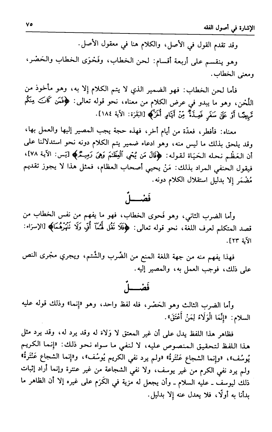 فظاهر هذا اللفظ يدل على أن غير المعتق لا وَلاءَ له وقد يرد له، وقد يرد مثل هذا اللفظ لتحقيق المنصوص عليه، لا لنفي ما سواه نحو ذلك: "إِنما الكريم يُوسُف"، "وإِنما الشجاع عَنْتَرةُ" "ولم يرد نفي الكريم يُوسُف"، و"إِنما الشجاع عَنْتَرةُ" ولم يرد نفي الكرم من غير يوسف، ولا نفي الشجاعة من غير عنترة وإنما أراد إثبات ذلك ليوسف -عليه السلام- وأن يجعل له مزية في الكَرَم على غيره إلا أن الظاهر ما بدأنا به أولًا، فلا يعدل عنه إِلا بدليل.