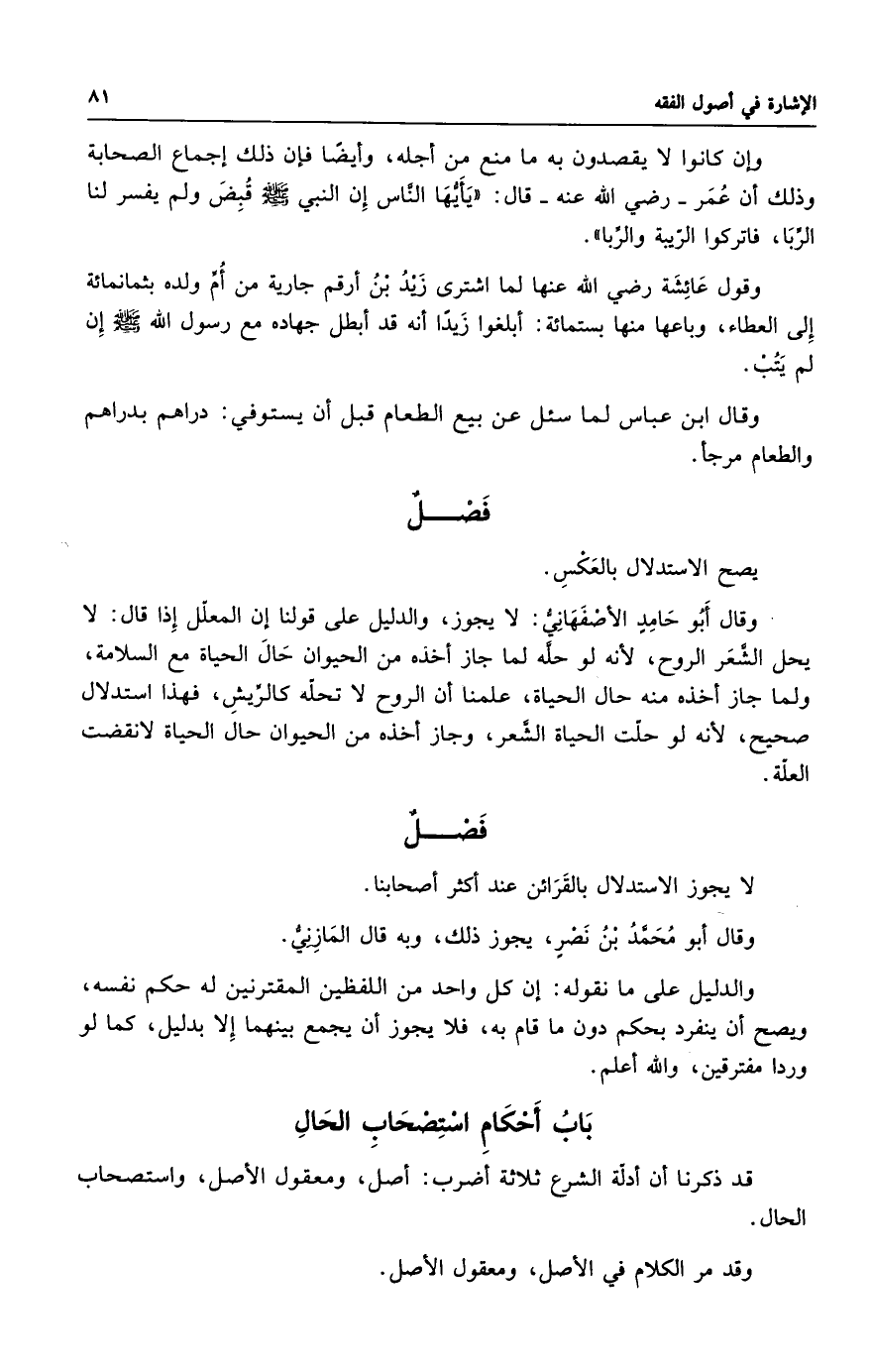 بَابُ أَحْكَامِ اسْتِصْحَابِ الحَالِ