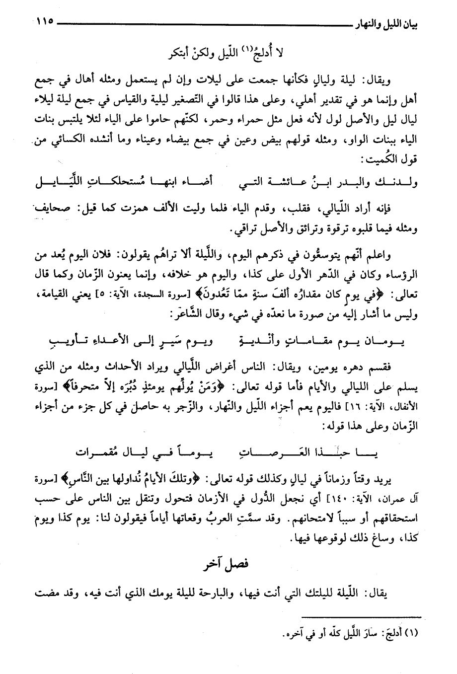 فصل آخر [في بيان قوله اللّيلة لليلتك التي أنت فيها، والبارحة لليلة يومك الذي أنت فيه]