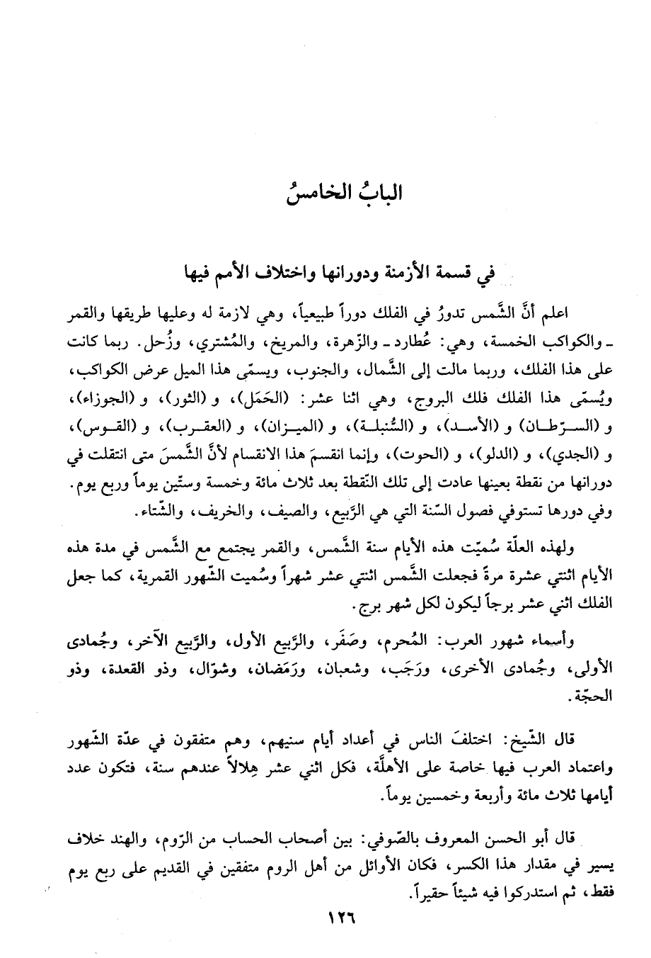 الباب الخامس في قسمة الأزمنة ودورانها واختلاف الأمم فيها