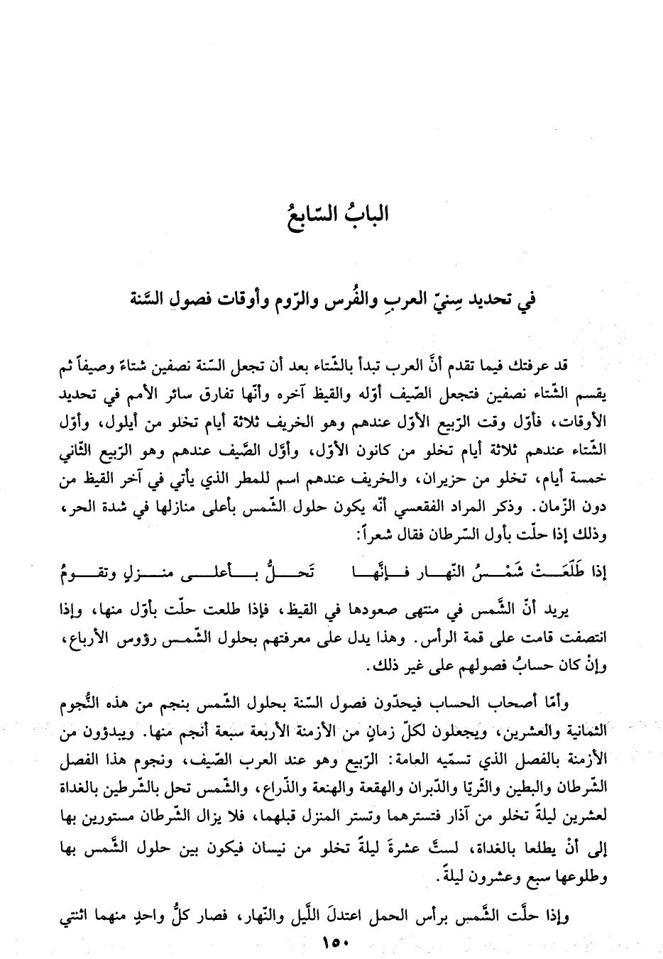 الباب السّابع في تحديد سنيّ العرب والفرس والرّوم وأوقات فصول السّنة