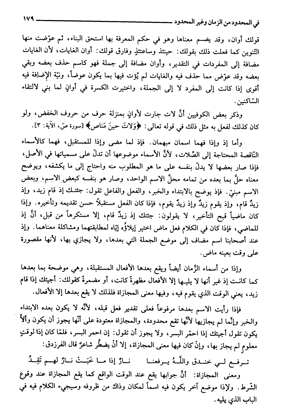 ومعنى المجازاة: أنّ جوابها يقع عند الوقت الواقع كما يقع المجازاة عند وقوع الشّرط. ولإذا موضع آخر يكون فيه اسما لمكان وذاك من ظروفه وسيجيء الكلام فيه في الباب الذي يليه.