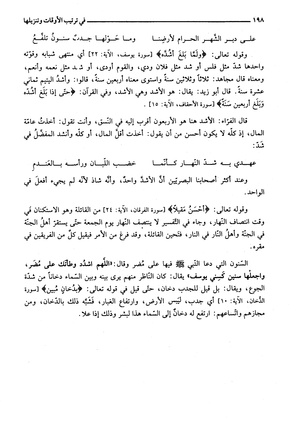 قال الفرّاء: الأشد هنا هو الأربعون أقرب إليه في النّسق، وأنت تقول: أخذت عامّة المال، إذ كلّه لا يكون أحسن من أن يقول: أخذت أقلّ المال، أو كلّه وأنشد المفضّل في شدّ: