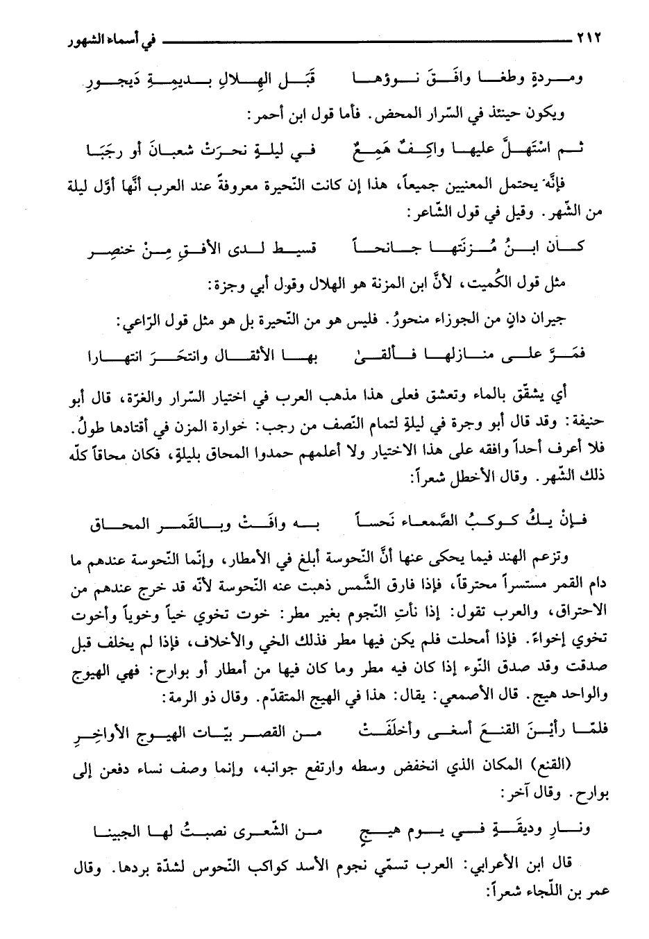 فلا أعرف أحدا وافقه على هذا الاختيار ولا أعلمهم حمدوا المحاق بليلة، فكان محاقا كلّه ذلك الشّهر. وقال الأخطل شعرا: