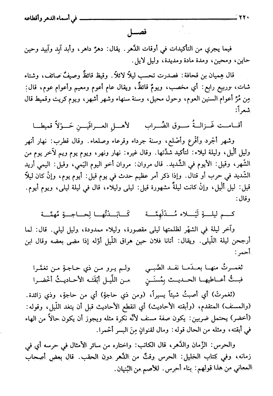من مرّ أعوام السنين العوم، وحول محيل، وسنة سنهاء وشهر أشهر، ويوم كريت وقميط قال شعرا:
