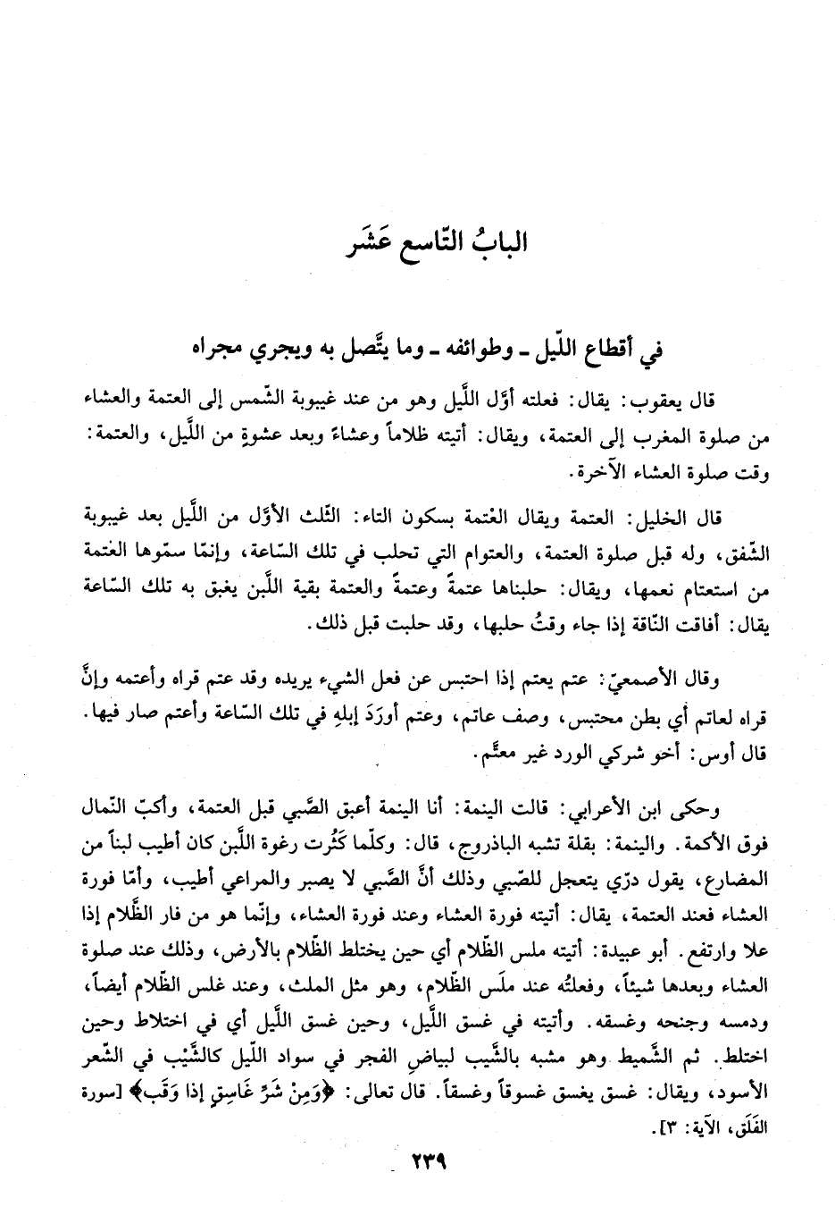 الباب التّاسع عشر في أقطاع اللّيل- وطوائفه- وما يتّصل به ويجري مجراه