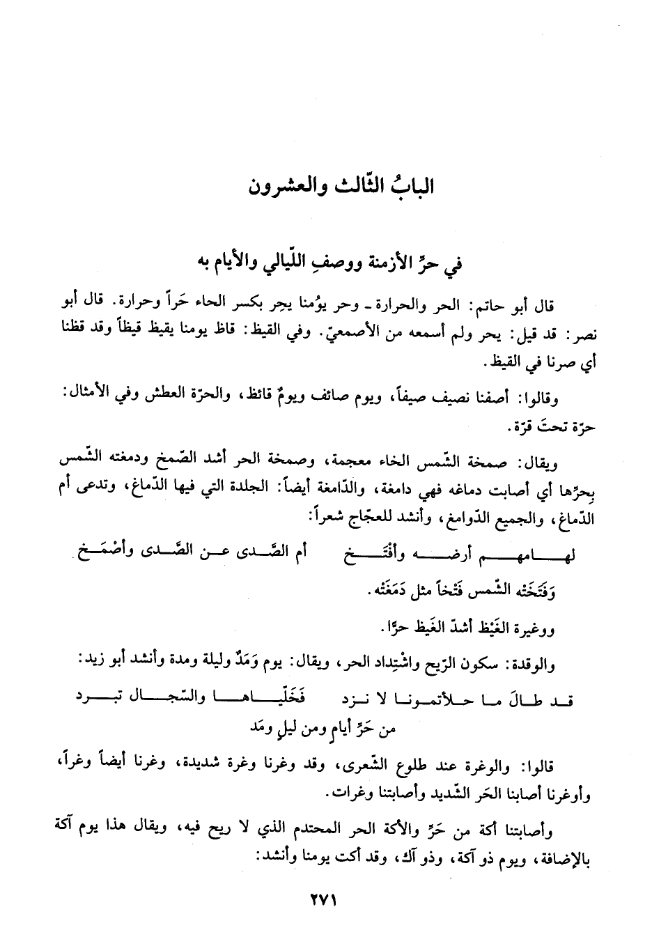 الباب الثّالث والعشرون في حرّ الأزمنة ووصف اللّيالي والأيام به