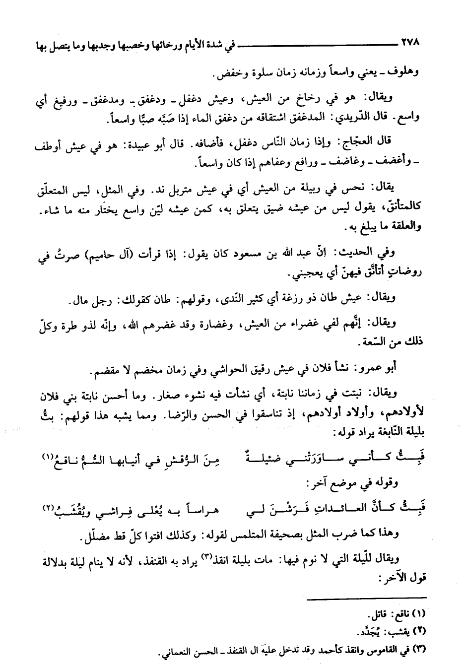 ويقال للّيلة التي لا نوم فيها: مات بليلة انقذ «3» يراد به القنفذ، لأنه لا ينام ليلة بدلالة قول الأخر: