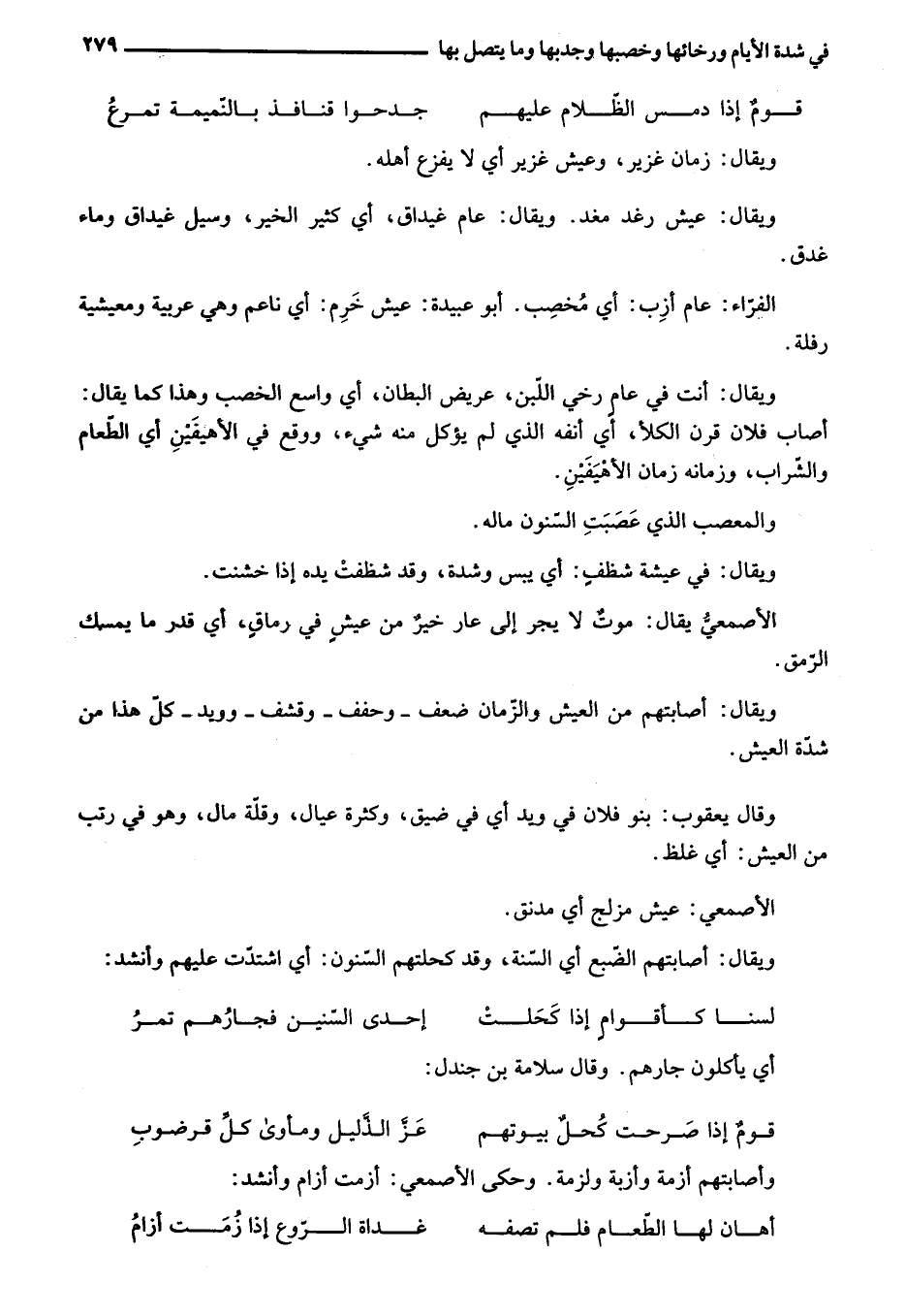 ويقال: أصابتهم من العيش والزّمان ضعف- وحفف- وقشف- وويد- كلّ هذا من شدّة العيش.