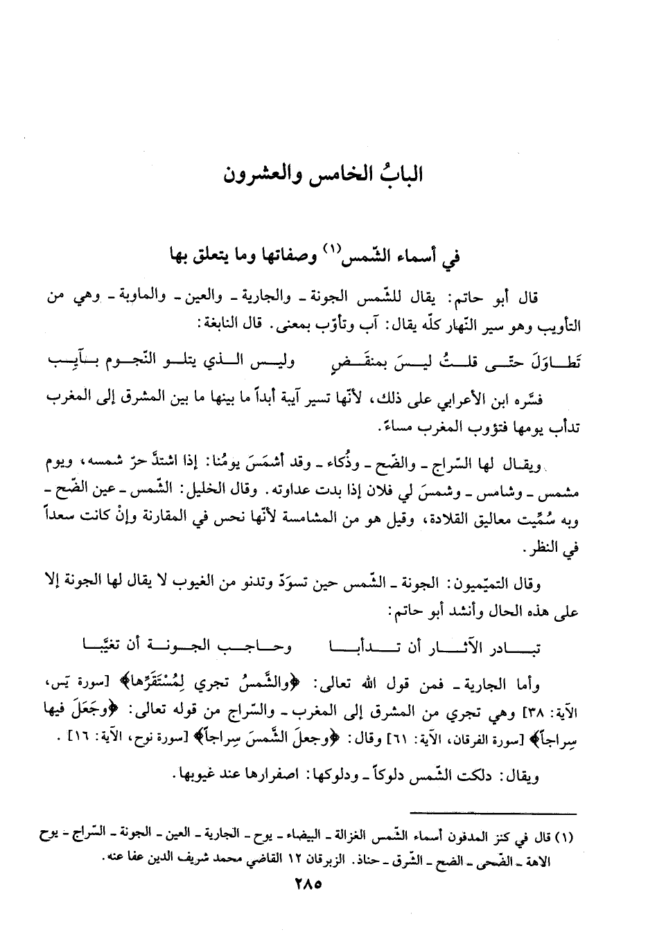 الباب الخامس والعشرون في أسماء الشّمس «1» وصفاتها وما يتعلق بها