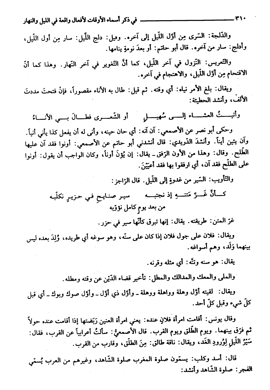 قال: أسد وكلب: يسمّون صلوة المغرب صلوة الشّاهد، وغيرهم من العرب يسمّي الفجر: صلوة الشّاهد وأنشد: