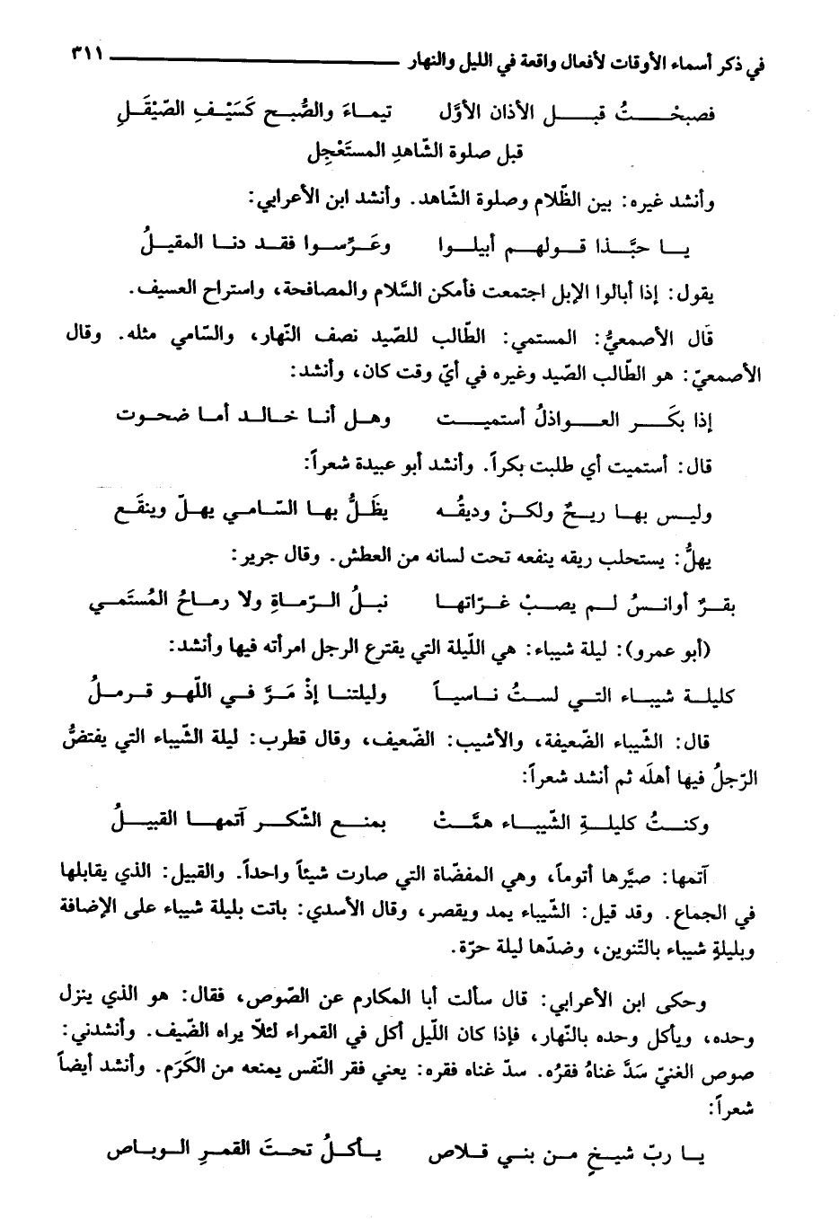 وأنشد غيره: بين الظّلام وصلوة الشّاهد. وأنشد ابن الأعرابي: