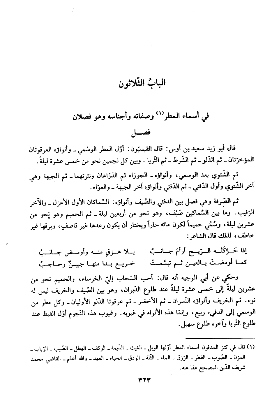 الباب الثّلاثون في أسماء المطر «1» وصفاته وأجناسه