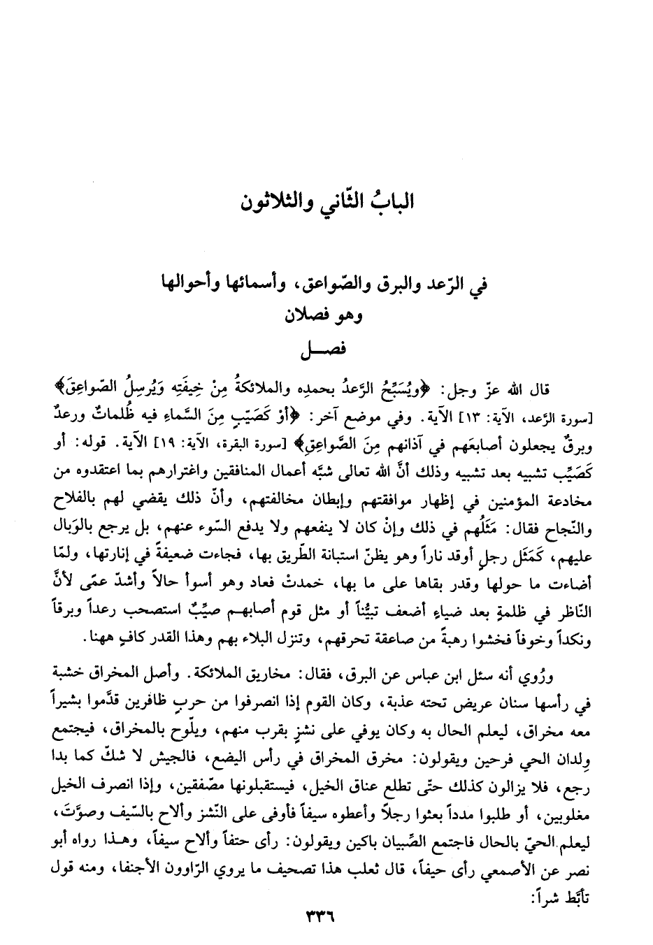 الباب الثّاني والثلاثون في الرّعد والبرق والصّواعق، وأسمائها وأحوالها