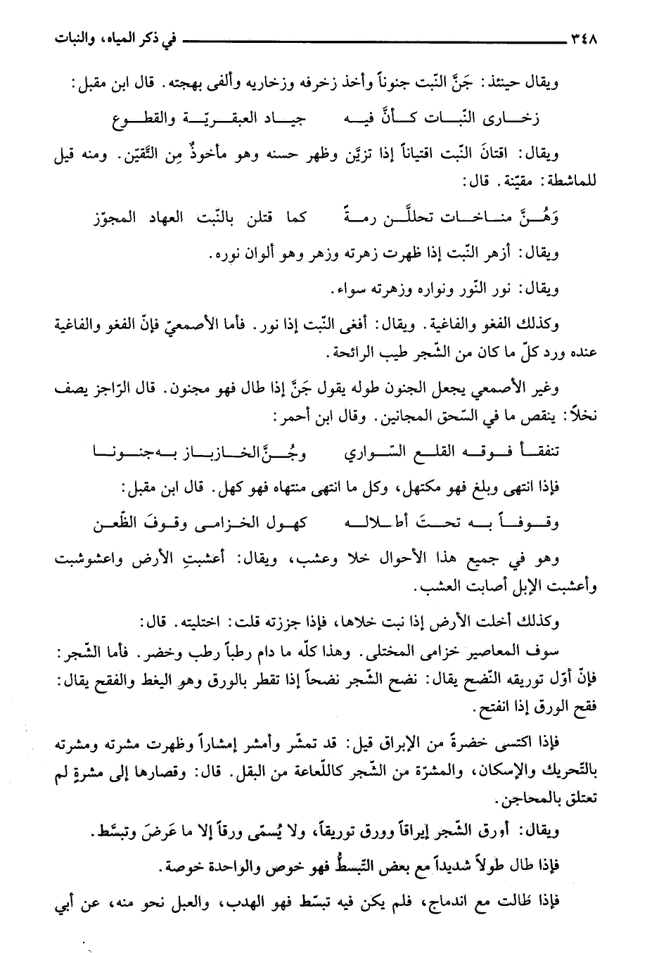 سوف المعاصير خزامى المختلى. وهذا كلّه ما دام رطبا رطب وخضر. فأما الشّجر: