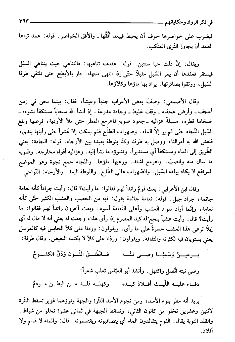 ويقال: إنّ ذلك حيا سنتين. قوله: عقدت تناهيها: فالتناهي حيث يتناهي السّيل فيستقر فعقدها أن يمر السّيل مقبلا حتّى إذا انتهى منتهاه. دار بالأبطح حتى تلتقي طرفا السّيل، ووثقوا بصائرتها: يراد بها ماؤها وكلأؤها.
