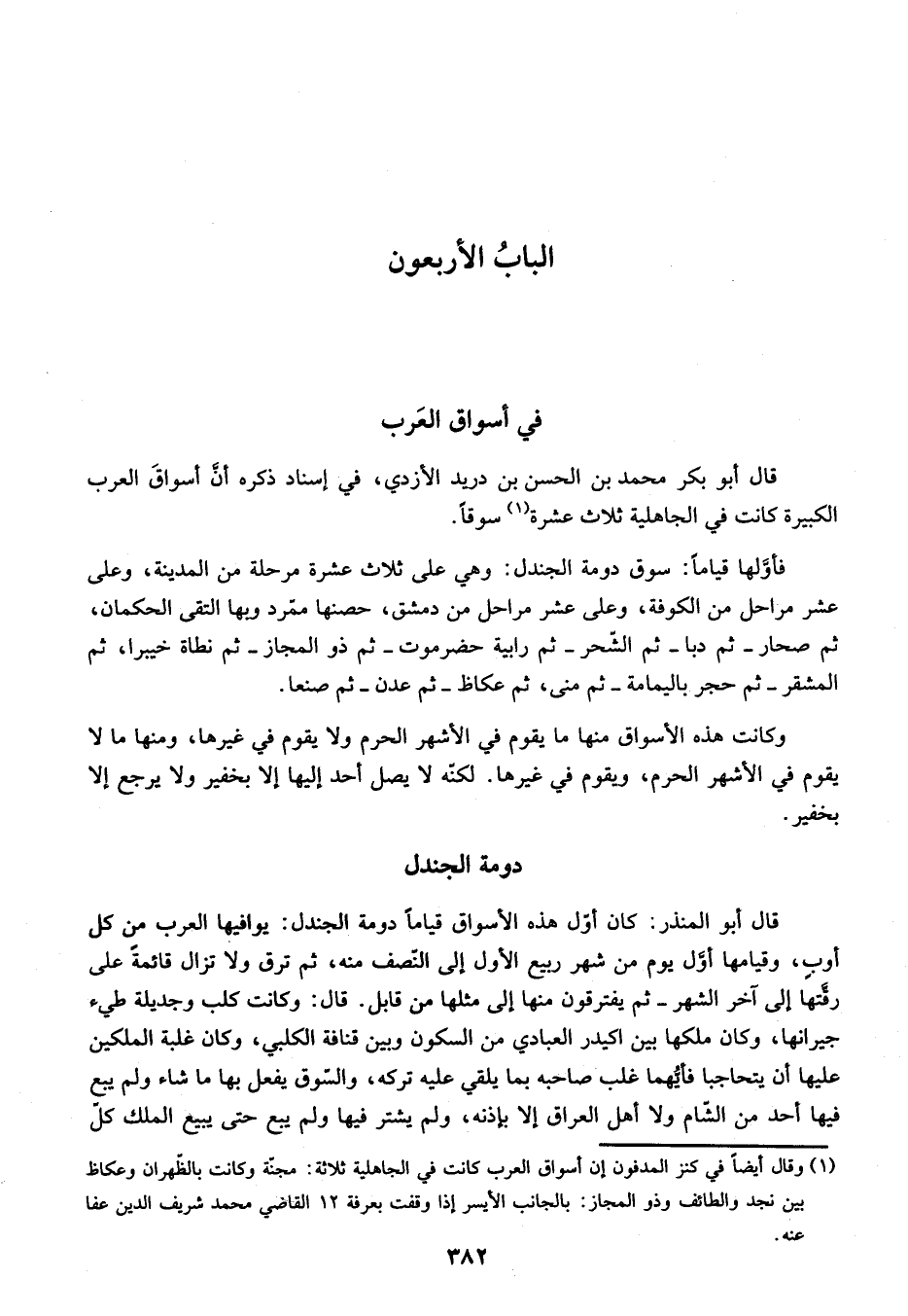 قال أبو بكر محمد بن الحسن بن دريد الأزدي، في إسناد ذكره أنّ أسواق العرب الكبيرة كانت في الجاهلية ثلاث عشرة «1» سوقا.