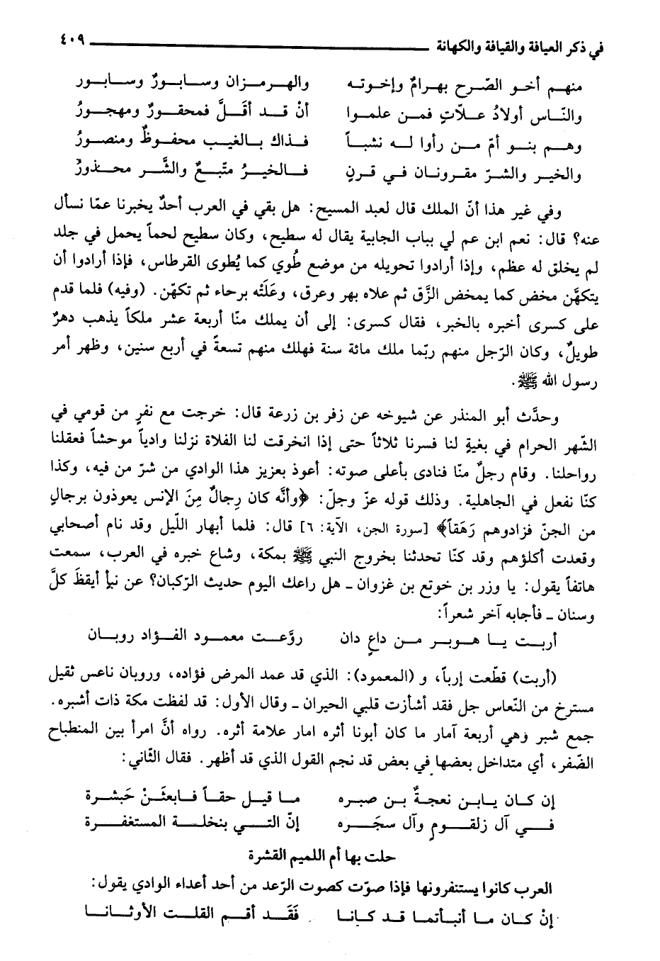 [سورة الجن، الآية: 6] قال: فلما أبهار اللّيل وقد نام أصحابي وقعدت أكلؤهم وقد كنّا تحدثنا بخروج النبي صلى الله عليه وسلم بمكة، وشاع خبره في العرب، سمعت هاتفا يقول: يا وزر بن خوتع بن غزوان- هل راعك اليوم حديث الرّكبان؟ عن نبأ أيقظ كلّ وسنان- فأجابه آخر شعرا: