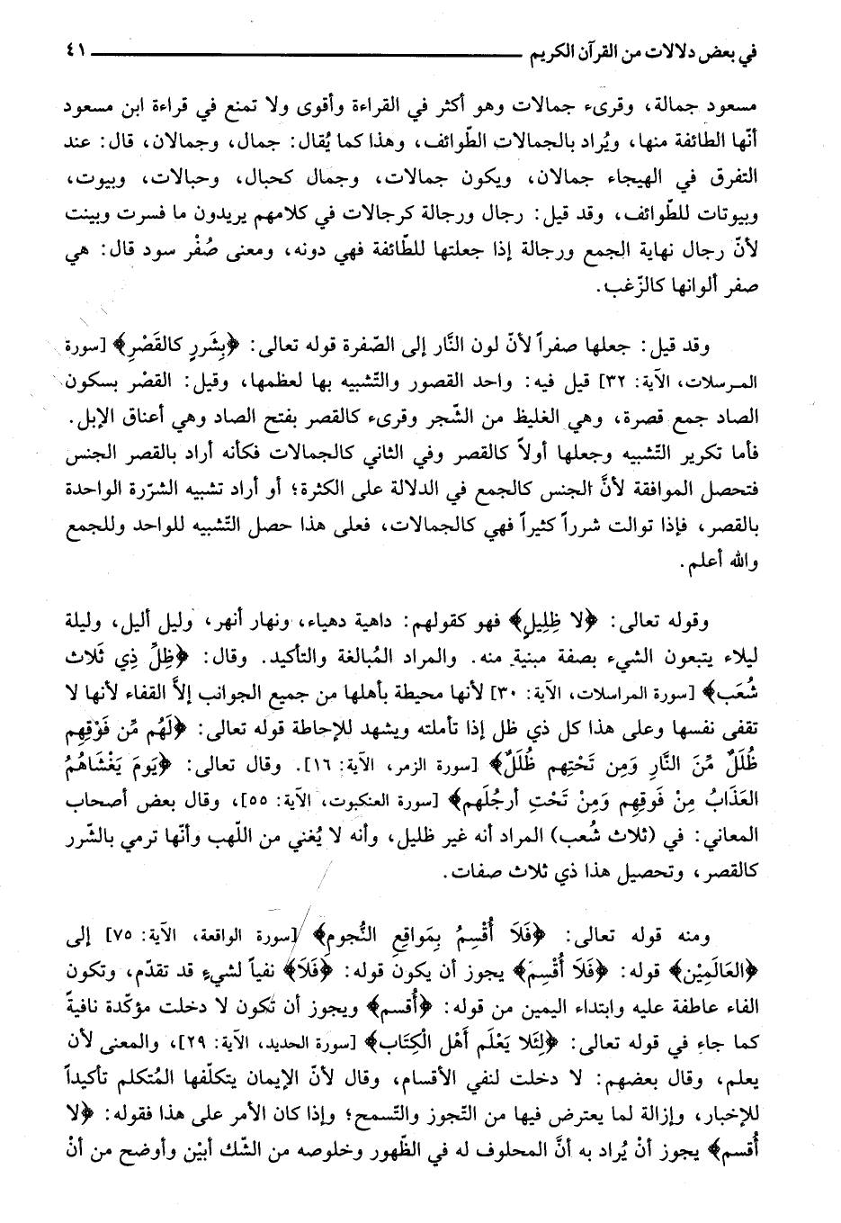 [سورة الحديد، الآية: 29] ، والمعنى لأن يعلم، وقال بعضهم: لا دخلت لنفي الأقسام، وقال لأنّ الإيمان يتكلّفها المتكلم تأكيدا للإخبار، وإزالة لما يعترض فيها من التّجوز والتّسمح؛ وإذا كان الأمر على هذا فقوله: فَلا أُقْسِمُ