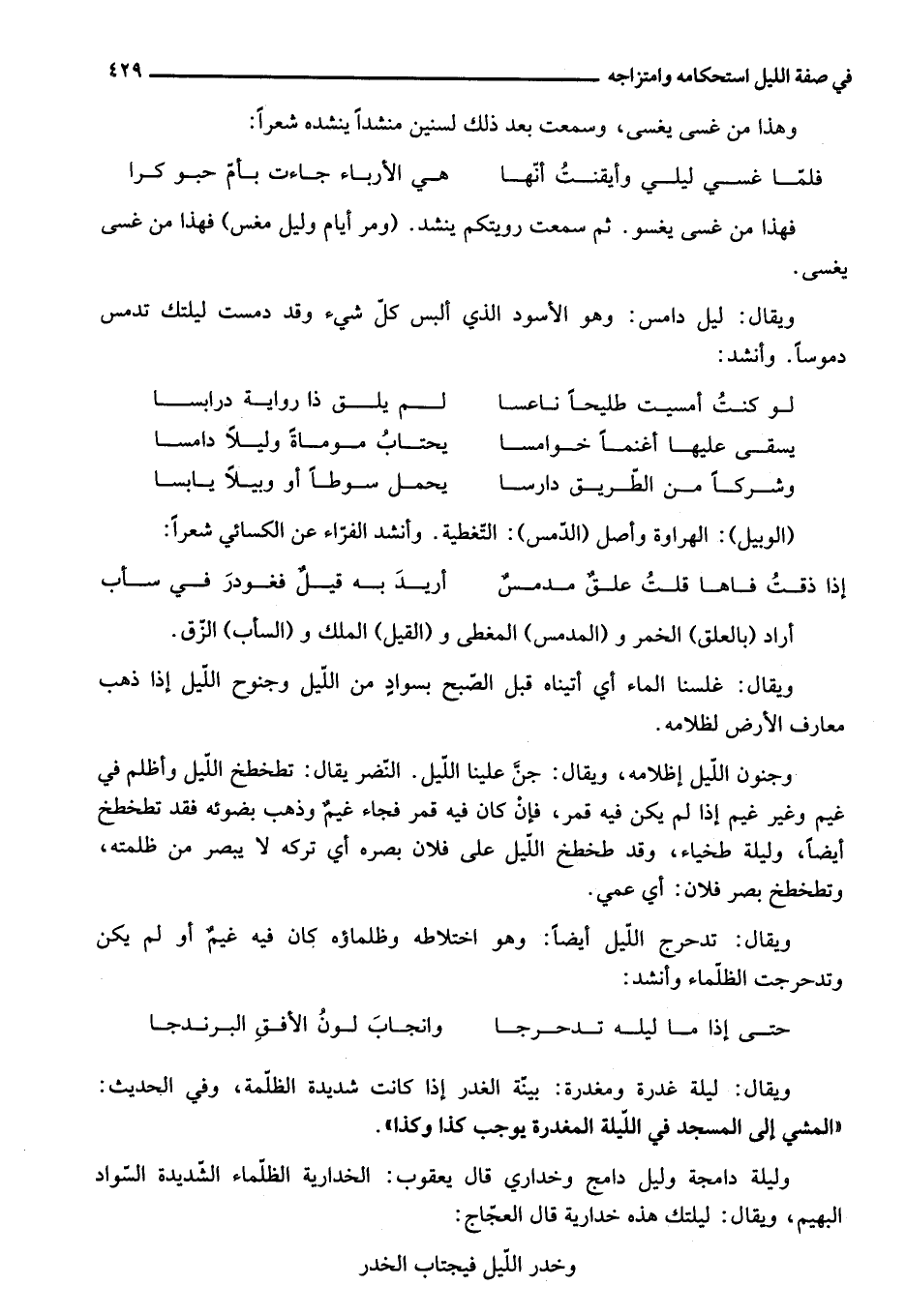 وخدر اللّيل فيجتاب الخدر