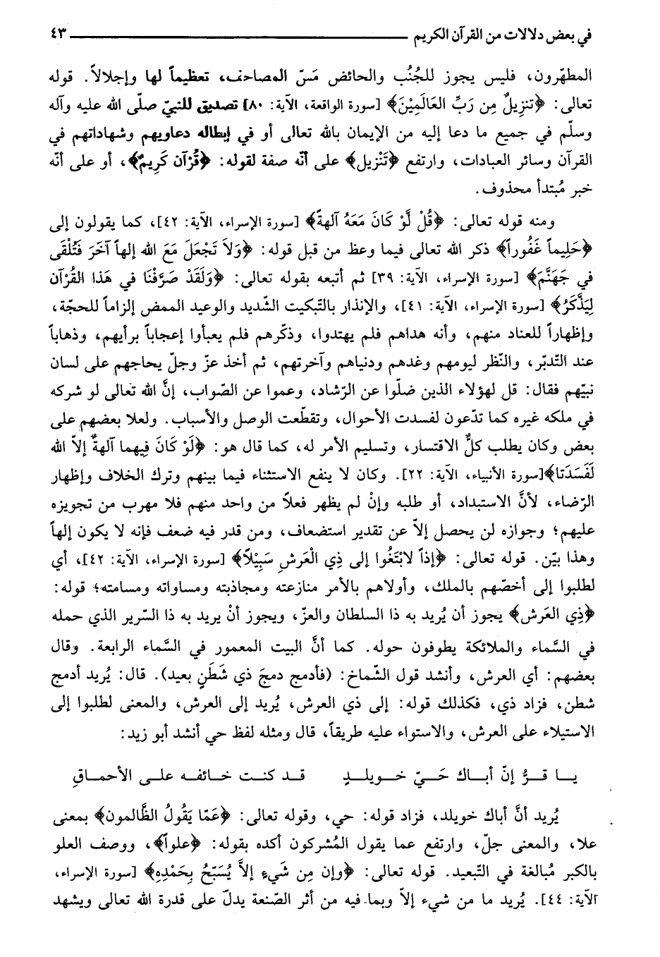 [سورة الأنبياء، الآية: 22] . وكان لا ينفع الاستثناء فيما بينهم وترك الخلاف وإظهار الرّضاء، لأنّ الاستبداد، أو طلبه وإن لم يظهر فعلا من واحد منهم فلا مهرب من تجويزه عليهم؛ وجوازه لن يحصل إلّا عن تقدير استضعاف، ومن قدر فيه ضعف فإنه لا يكون إلها وهذا بيّن. قوله تعالى: إِذاً لَابْتَغَوْا إِلى ذِي الْعَرْشِ سَبِيلًا