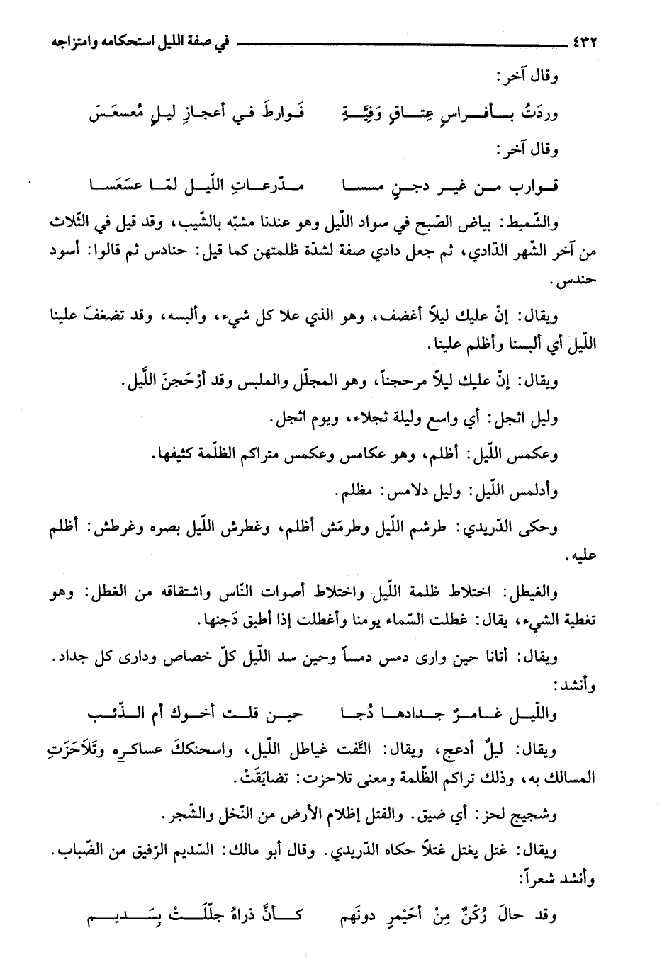 ويقال: ليل أدعج، ويقال: التّفت غياطل اللّيل، واسحنكك عساكره وتلاحزت المسالك به، وذلك تراكم الظّلمة ومعنى تلاحزت: تضايقت.