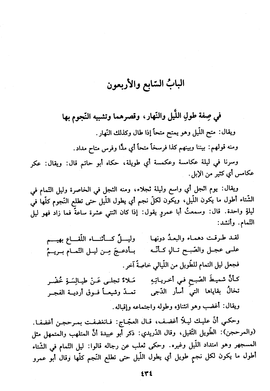 الباب السّابع والأربعون في صفة طول اللّيل والنّهار، وقصرهما وتشبيه النّجوم بها