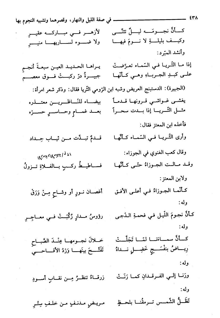 فأخذه ابن المعتز فقال: