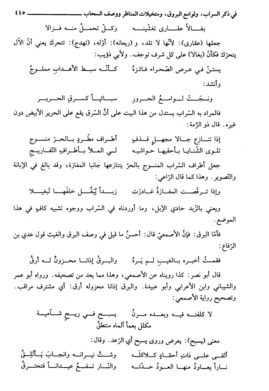فأمّا البرق: فإنّ الأصمعيّ قال: أحسن ما قيل في وصف البرق والغيث قول عدي بن الرّفاع: